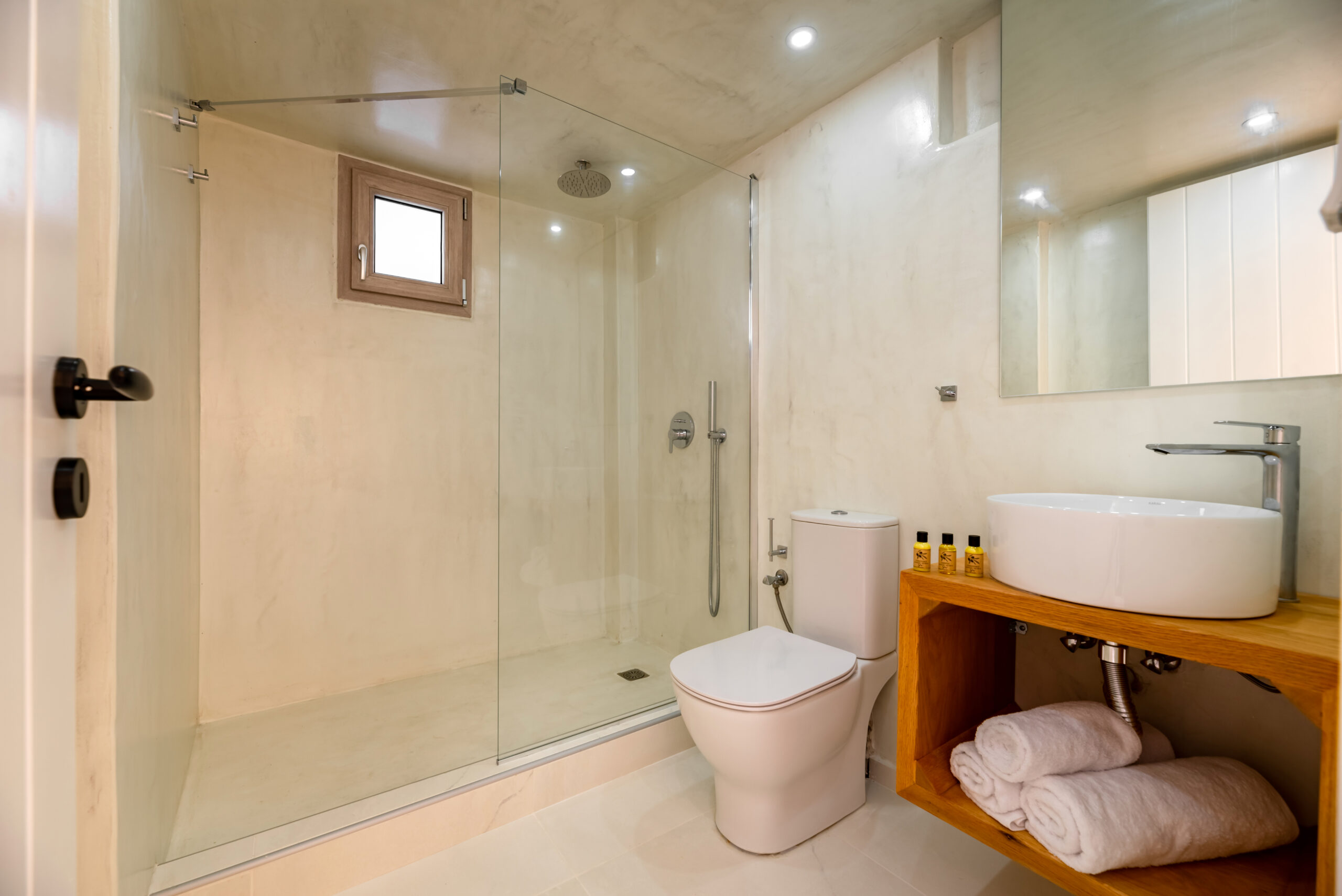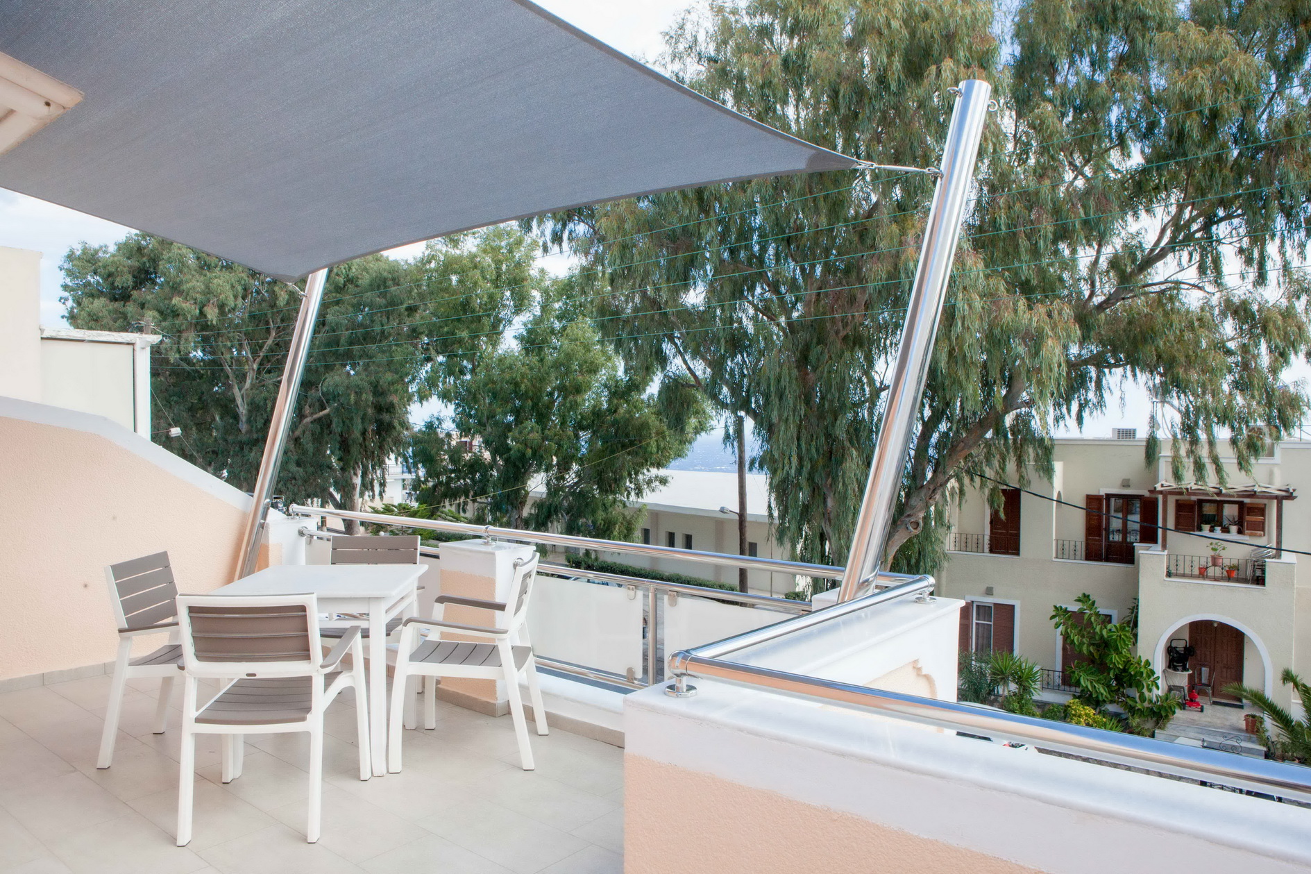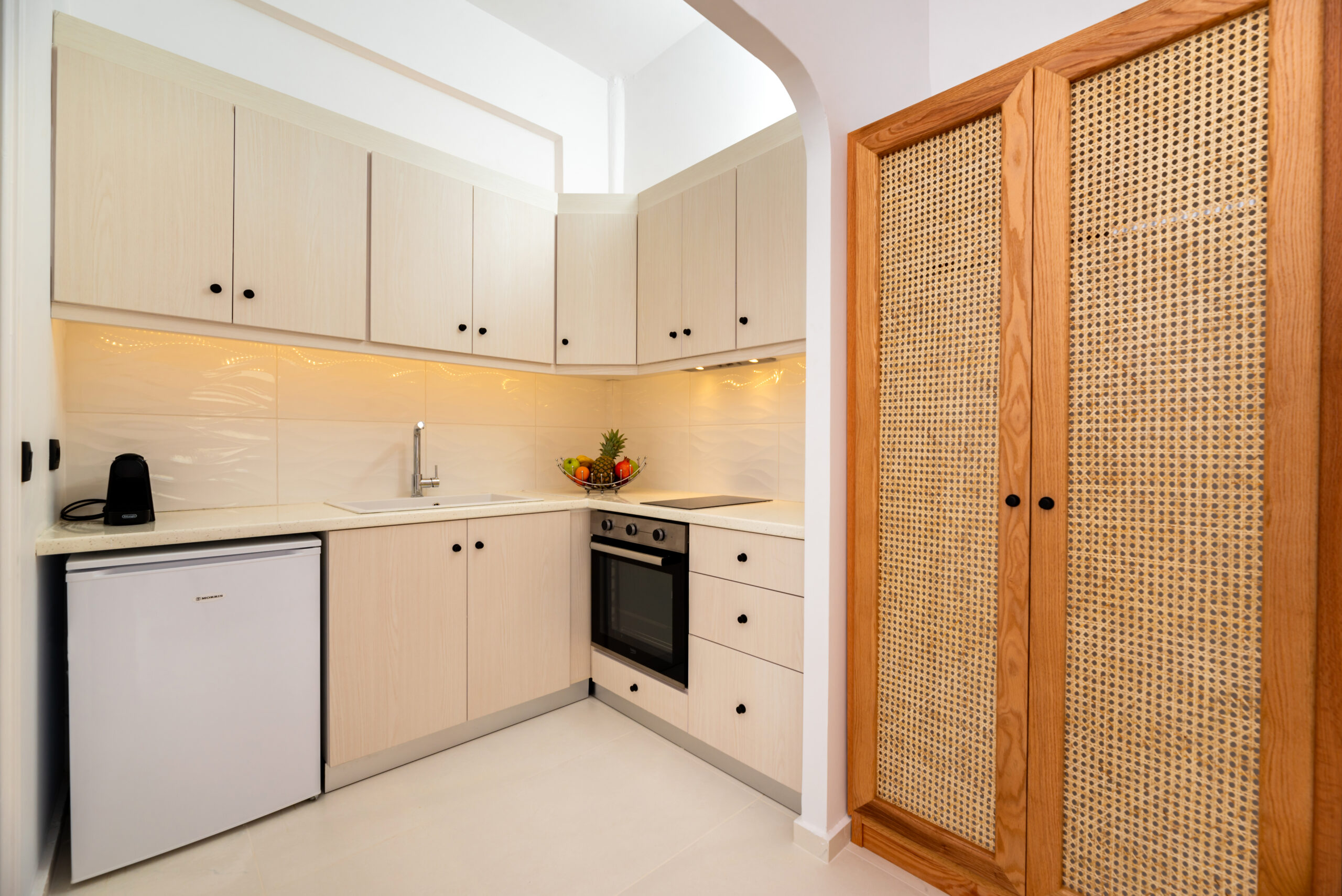 A charming Elegant Suite in the centre of Fira Town, is fitted with air conditioning, a fully equipped kitchen with a dining area, a flat-screen TV and a private bathroom with shower, free toiletries and a hairdryer. A fridge and stovetop are also offered, as well as a coffee machine and a kettle. A veranda with outdoors furniture create an irresistible ambience where guests can enjoy their summer stay.
